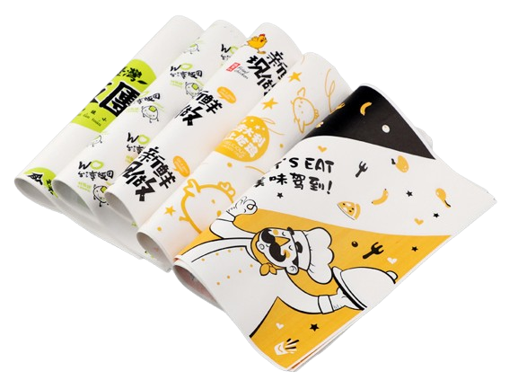 产品克重范围30-60g/m²,具有平滑度高膜附着牢固强度高、挺度高、不易起皱、印刷效果好等特点,主要用于生产食品级淋膜纸,产品经过单面或者双面淋膜、覆铝箔后具有强度高、防水、防油等特点,广泛应用于汉堡包装、食品包装袋、餐盘垫等。